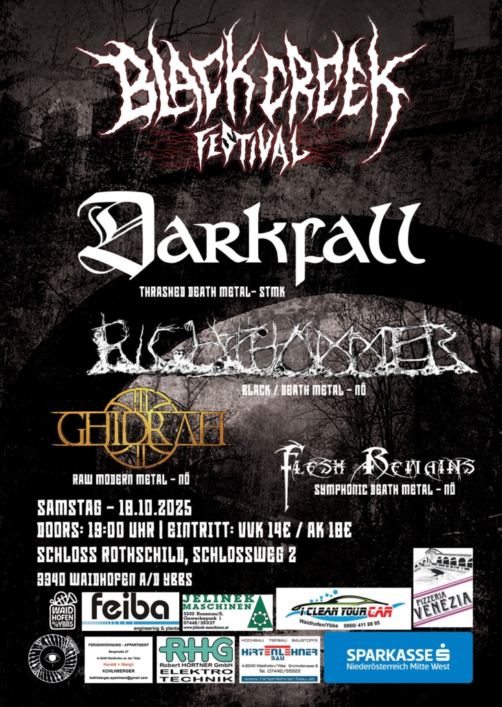 DARKFALL are confirmed for BLACK CREEK FESTIVAL at Schloss Rothschild in Waidhofen an der Ybbs, Austria on Saturday, 18 October 2025.